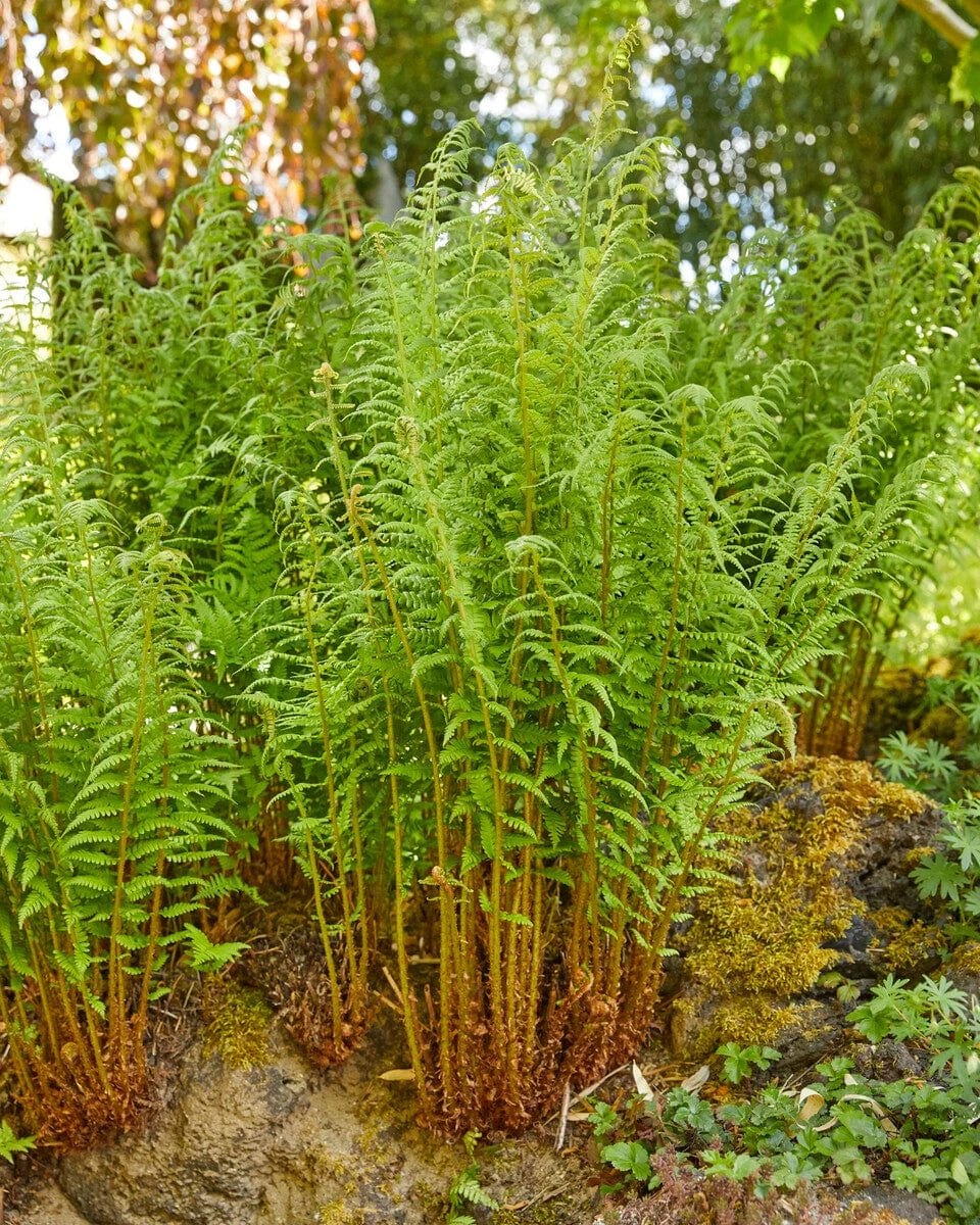 - Dryopteris filix-mas, or Male Fern, is a classic and reliable fern species with a robust nature. It features erect, arching fronds that unfurl in a graceful manner, creating a lush and verdant presence in shady areas. With its vibrant green foliage and tolerance for various soil conditions, this fern is a popular choice for naturalizing woodland settings or adding texture to borders and rockeries.